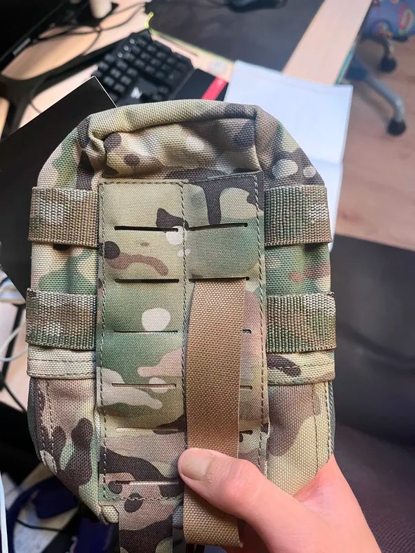• Вертикальное размещение: существенная вместительность при минимальной ширине — всего 2 ячейки Molle.