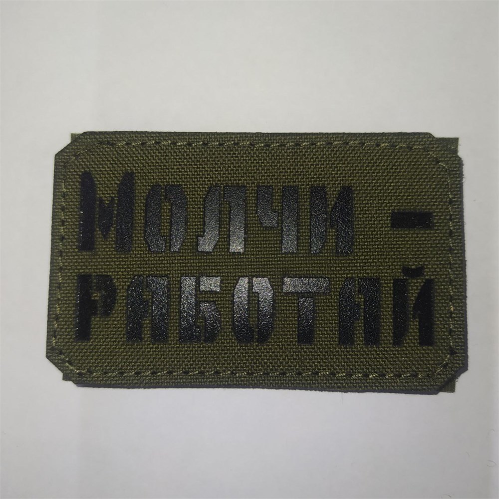 Шеврон на липучке LaserCut Молчи - работай 5x8 олива
