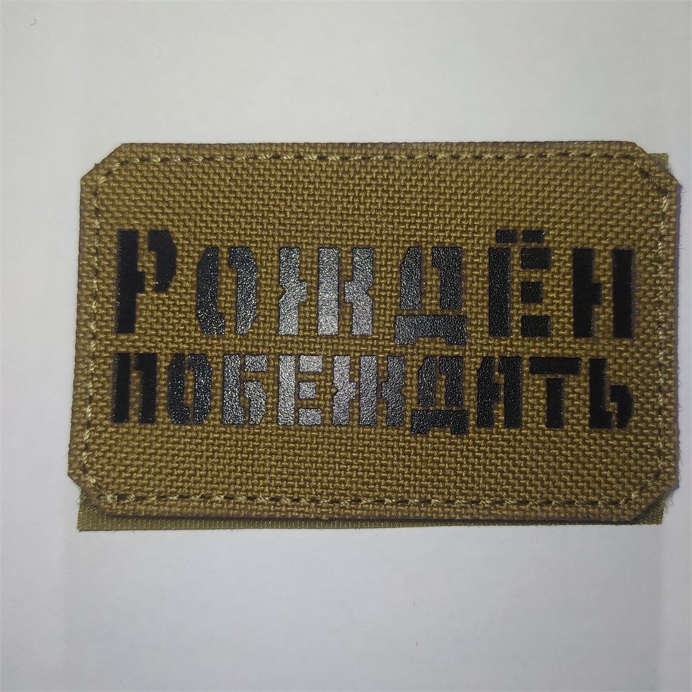 Шеврон на липучке LaserCut Рождён побеждать 5x8 койот
