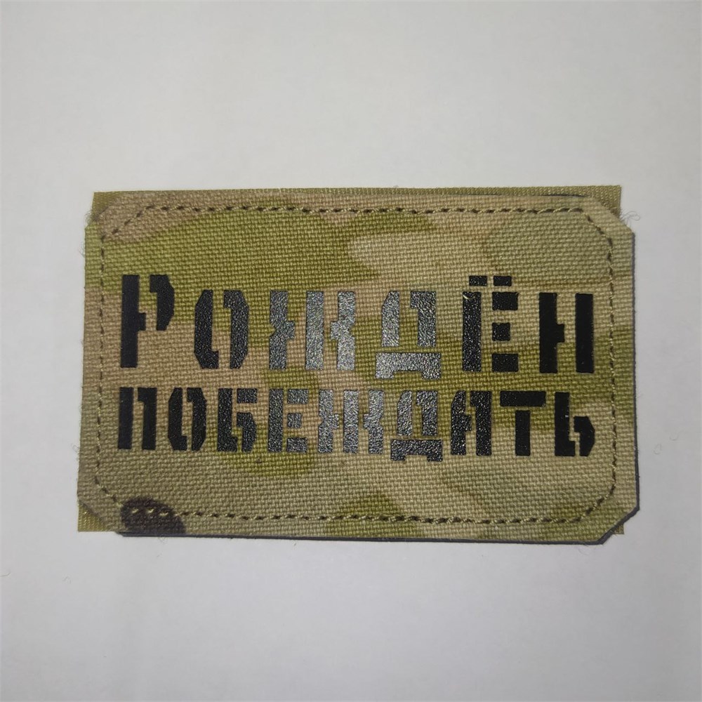 Шеврон на липучке LaserCut Рождён побеждать 5x8 мультикам