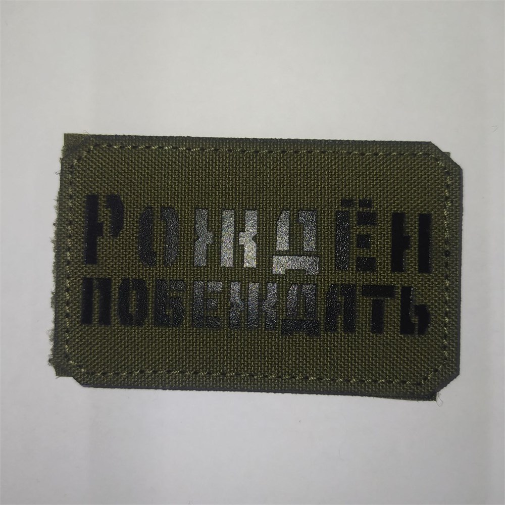 Шеврон на липучке LaserCut Рождён побеждать 5x8 олива